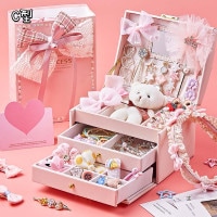 ジュエリーケーストップ層は指輪、ヘアクリップやヘアピン、ネックレス、イヤリング、ピアス、指輪などのアクセサリーなどの各種類の小物に合わせるスペースを持っています。これらはこの可愛い収納ケースに入れられます。下層はブレスレット、腕時計なども収納できます。